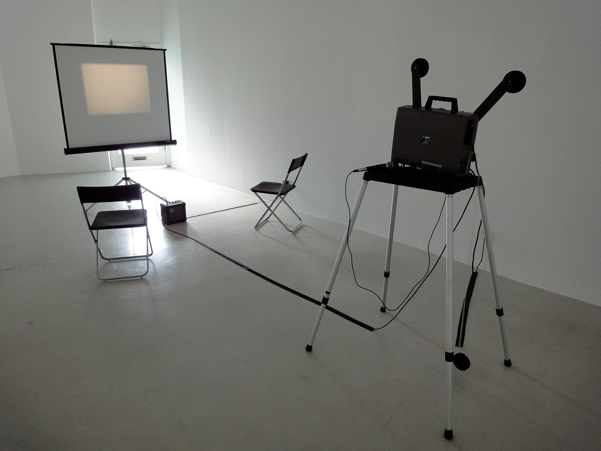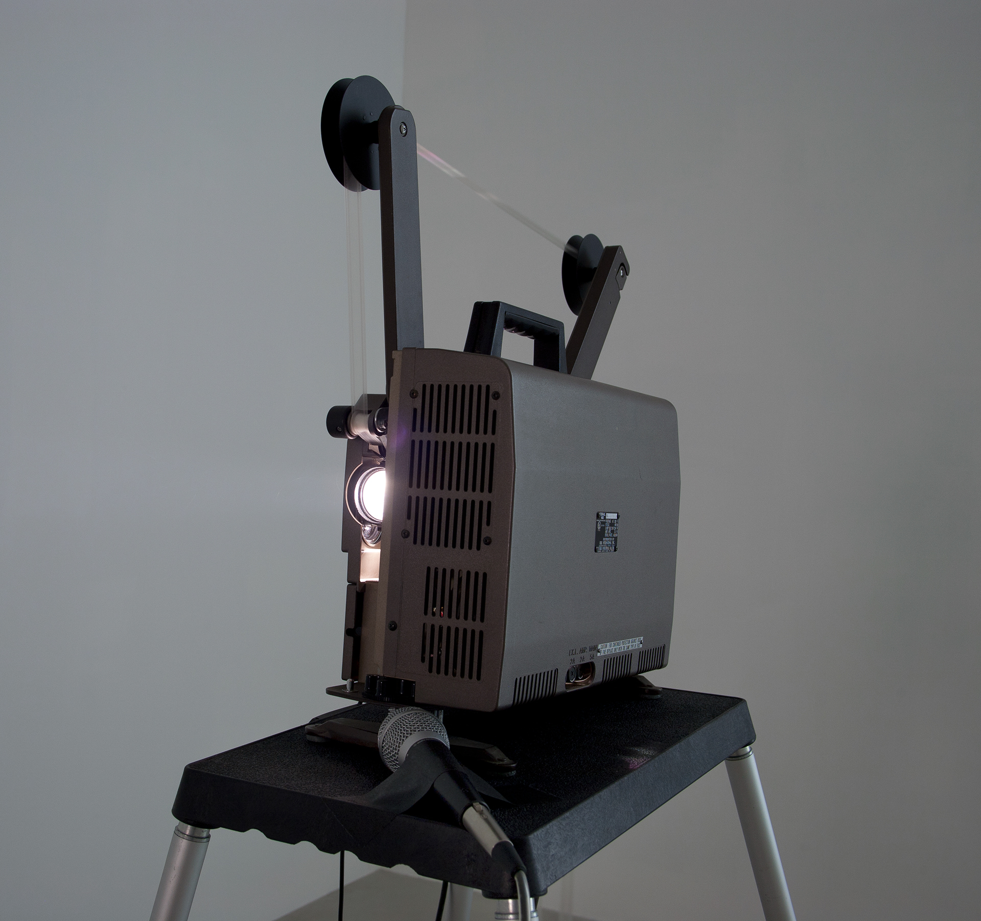 16mm film installation for amplified projector and double-perforated, clear leader
