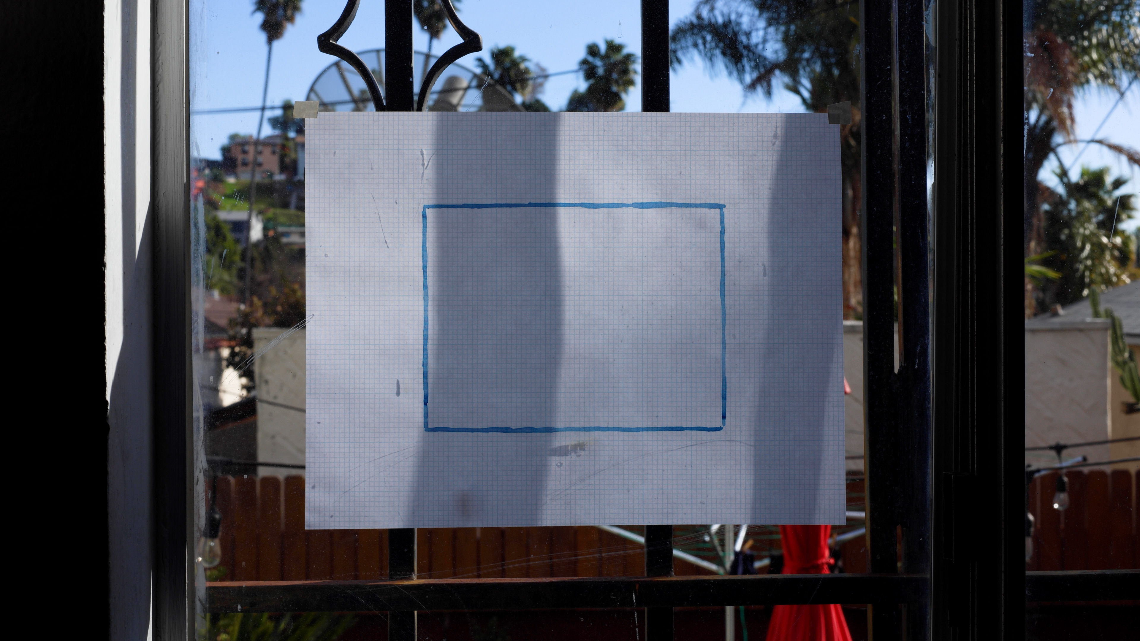 Half an hour from an ongoing work of expanded cinema. This recording, Window Film, 2025, is a film unto itself and therefore has a beginning, middle, and end, but the Window Film, i.e. the 4 x 3 rectangle of blue watercolor on translucent vellum, remains and continues to run. “Changing, it rests.”